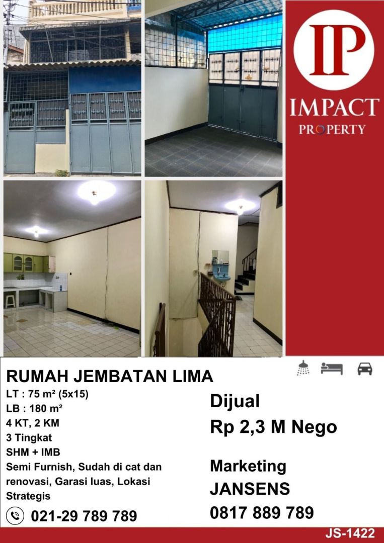 Jakarta Barat, Jembatan Lima - Rumah megah ini dibangun di atas tanah seluas 75m² dan dirancang dengan model modern. Terdiri dari 3 kamar tidur dan 2 kamar mandi.